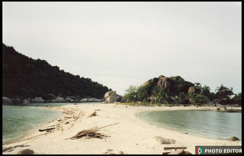 It was time to head over to the next Island, Koh Phangan, we got a taxi to Nathon and ferry over to Koh Phangan, now this island is more relaxed, not like Samui, unless you go to Had Rin, that’s where all the drug addicts stay, so it’s a no for me. We were met by all the Thai people on the ferry trying to get everyone to their bungalows; we decided to go to OK Bungalows on Hin Kong beach, the west side of the Island. We met a Canadian girl Susan, we all wanted to go to the other Island. So we went to Koh Tao for the day just a day trip not many places to stay, and the beaches are all rocky, very good for scuba diving. Spent the day on Had Sai Dang, the next day we went to see another beach, but all rock, so we then went to Koh Nang Yuan, we stayed 1 week. Koh Nang Yuan is one of only two places in the world where three Islands at high tide and low tide the become one Island, such a beautiful place.